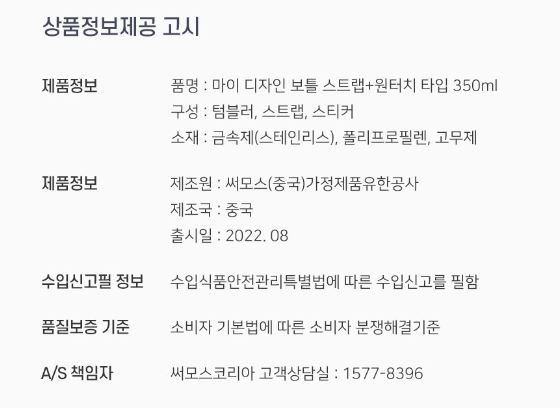 [THERMOS] JOI-350K 마이 디자인 보틀 스트랩+원터치 타입 350ml
